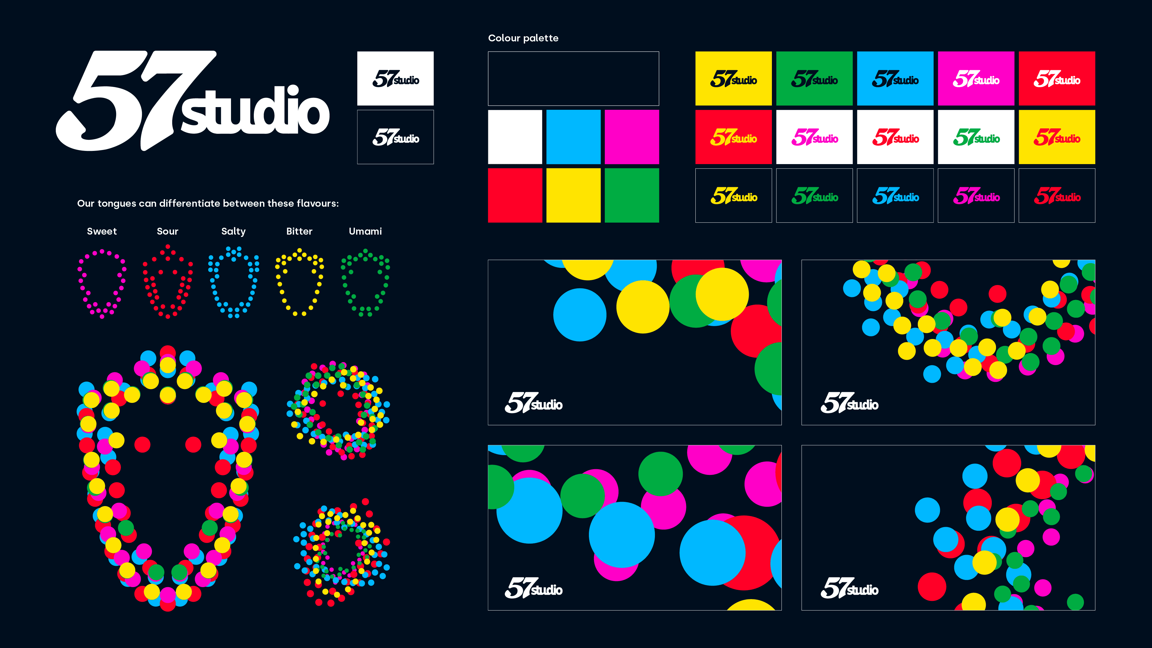 I defined a tastebud motif and mapped five flavour profiles to the studio’s core mediums. Each flavour acts as a pathway icon that guides work streams in context, then combines with the others to form one cohesive visual. This lets the brand show breadth across mediums while always reading as a single, multidisciplinary studio.